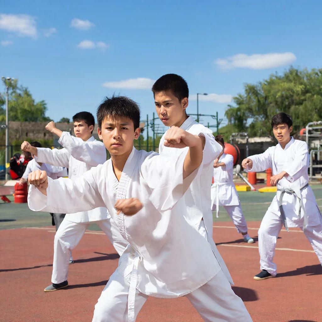 - Одежда: На первых порах подойдут любые свободные спортивные штаны (не джинсы!) и хлопковая футболка. Позже мы рекомендуем приобрести «ифу» — традиционный костюм для занятий Ушу, который не сковывает движений и создает нужный настрой.